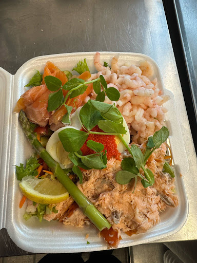 We had a fish platter with various fish (at least 7 varieties) and a large roll with shrimp (unfortunately, they only had one left). It was really delicious, and our protein needs were covered for a week 😋. The saleswoman was very nice; we couldn't decide right away, the selection was huge. We would have taken more, but unfortunately, that wasn't possible without a cooler bag.