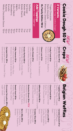 I bought a Cookie Dough with soft ice cream for a pretty good price – only 55 kr. We took it as a takeaway, and it would have been a good idea if they had put the soft ice cream in a separate container, as it melted quickly (not a big problem, just a good tip).